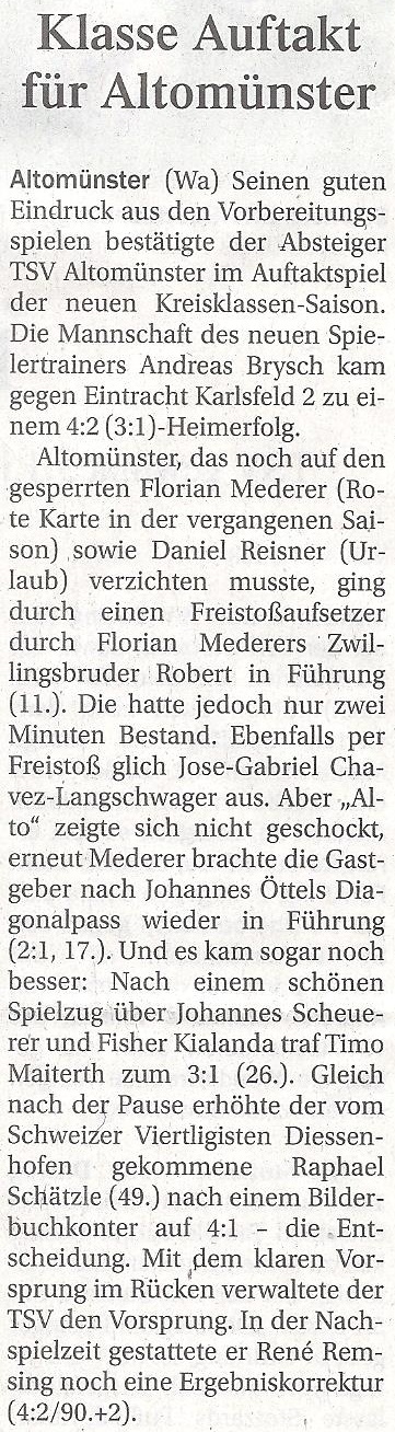 Spielbericht: TSV Altomünster – TSV Eintracht Karlsfeld II