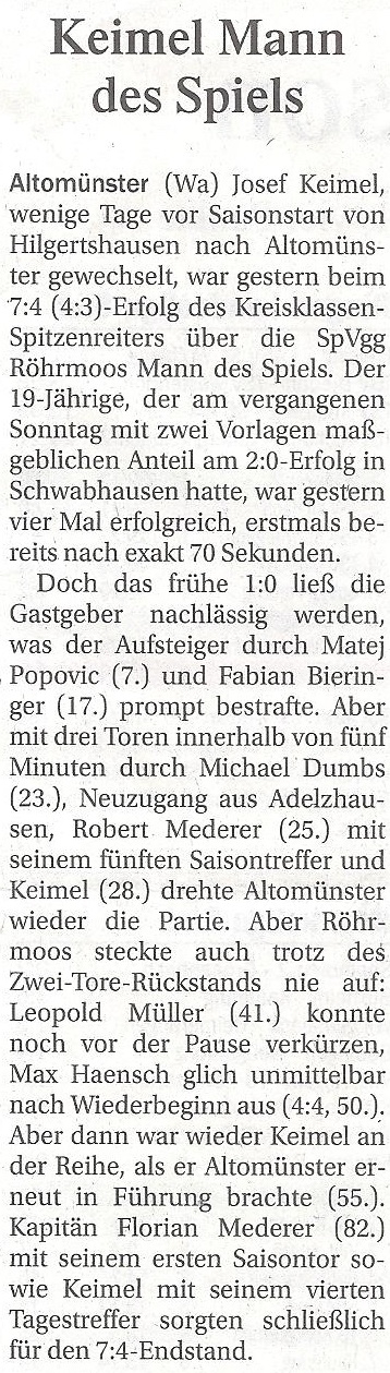 Spielbericht: TSV Altomünster – SpVgg Röhrmoos-Großinzemoos
