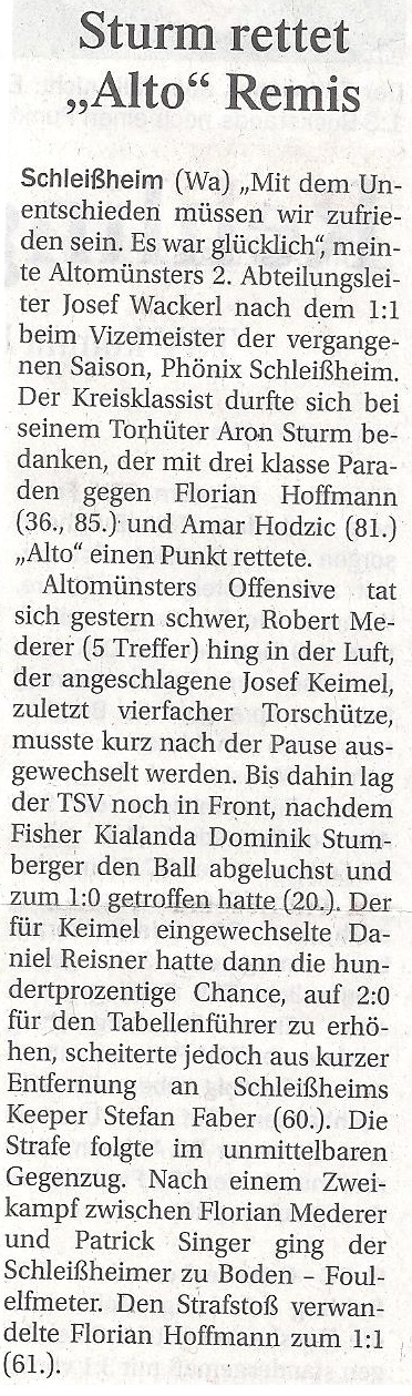 Spielbericht: FC Phönix Schleißheim – TSV Altomünster