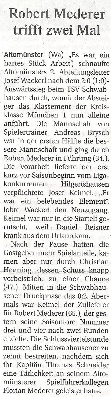Spielbericht: TSV Schwabhausen – TSV Altomünster