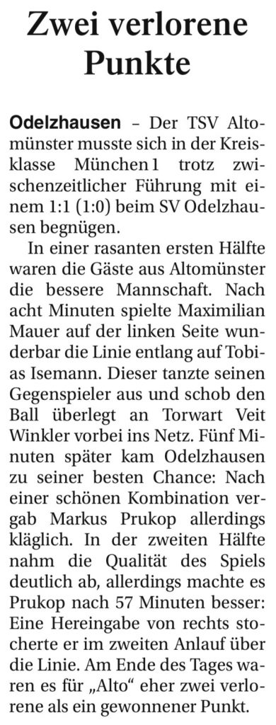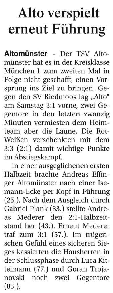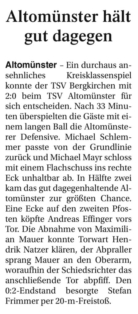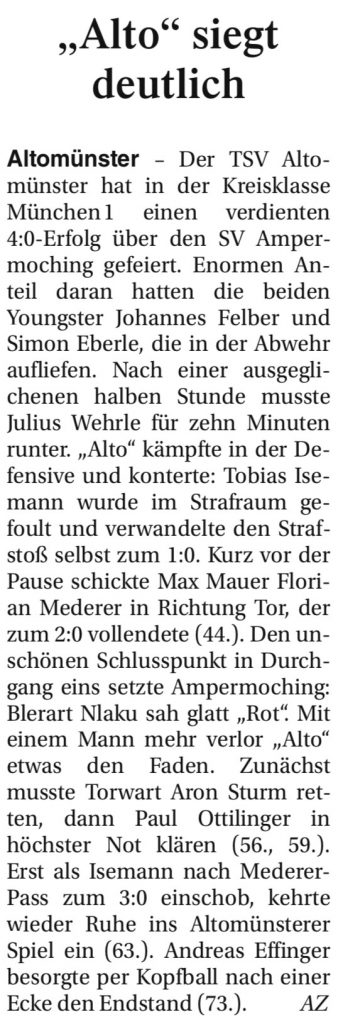 Spielbericht: TSV Mooach-Hartmannshofen – SG Altomünster / Pipinsried II 14. September 2023 stefanadmin