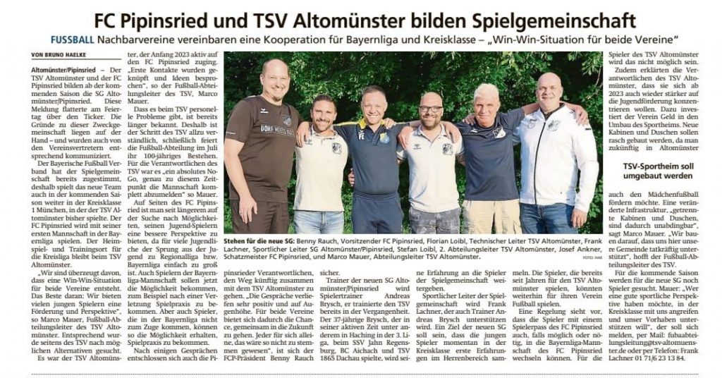 Bericht zur Gründung der Spielgemeinschaft TSV Altomünster / FC Pipinsried II 11. Juni 2023 stefanadmin