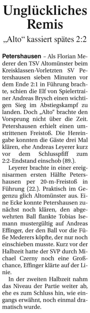 Spielbericht: TSV Altomünster – TSV Schwabhausen