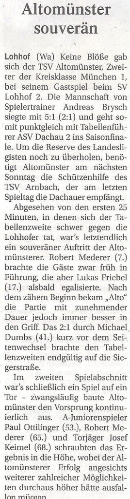 Spielbericht: SV Lohhof II – TSV Altomünster