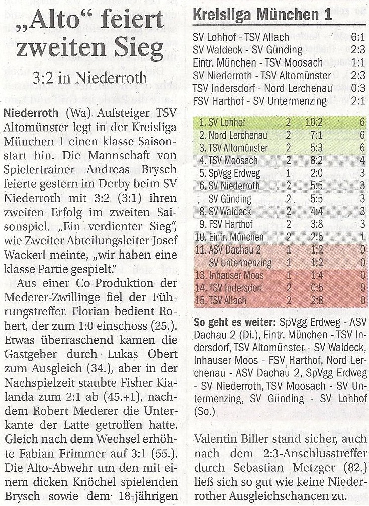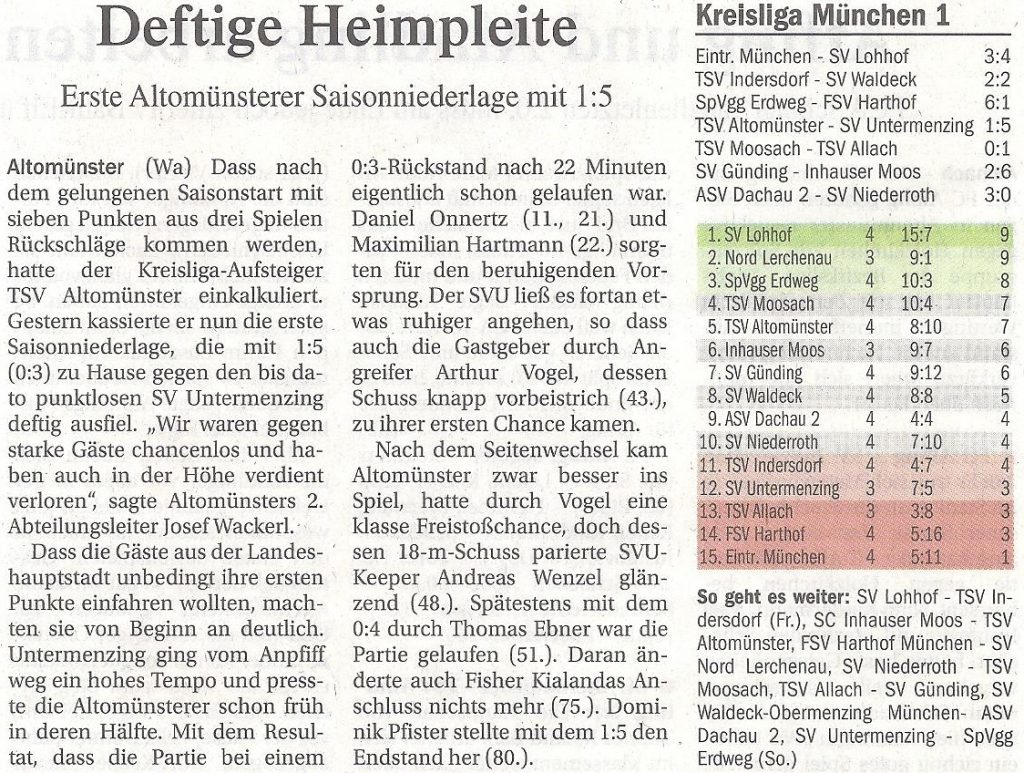 Spielbericht: TSV Altomünster – SV Untermenzing