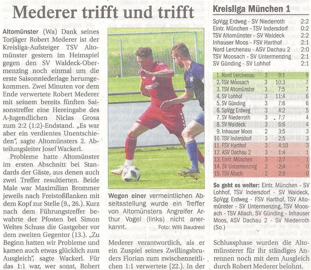 Spielbericht: TSV Altomünster – SV Waldeck-Obermenzing