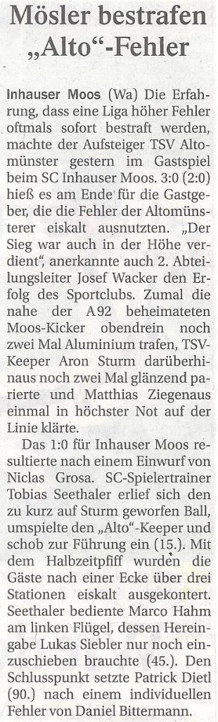 Spielbericht: SC Inhauser Moos – TSV Altomünster