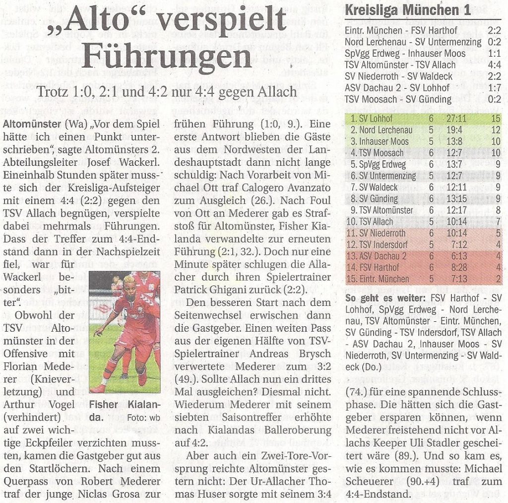 Spielbericht: TSV Altomünster – TSV Allach 09