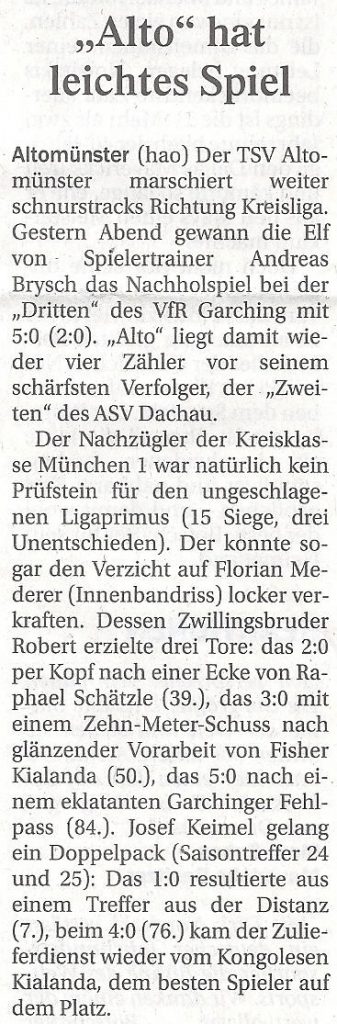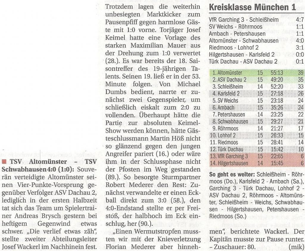 Spielbericht: TSV Altomünster – ASV Dachau II