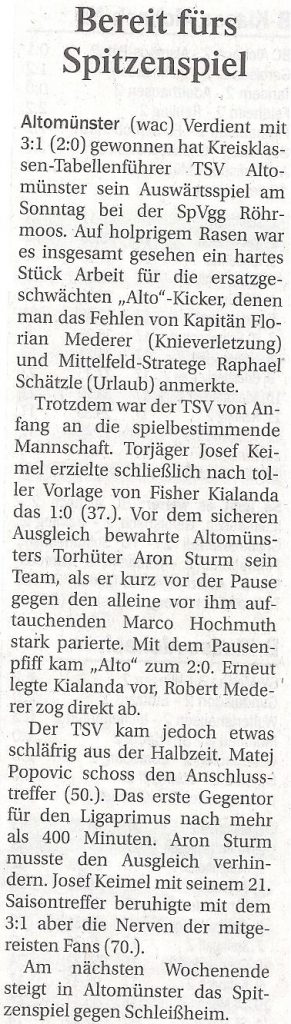 Spielbericht: SpVgg Röhrmoos – TSV Altomünster