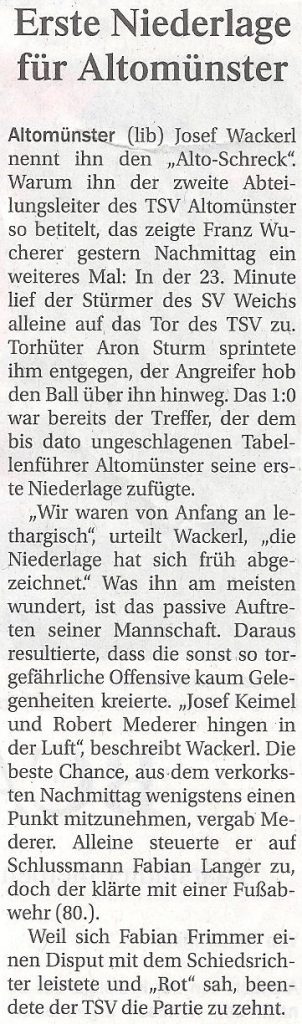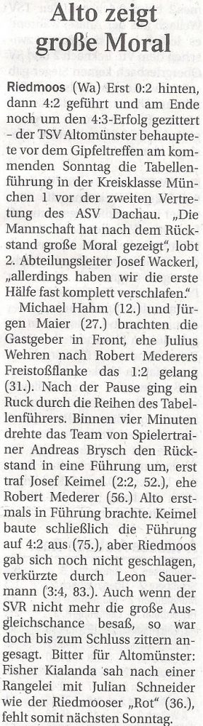 Spielbericht: SV Riedmoos – TSV Altomünster