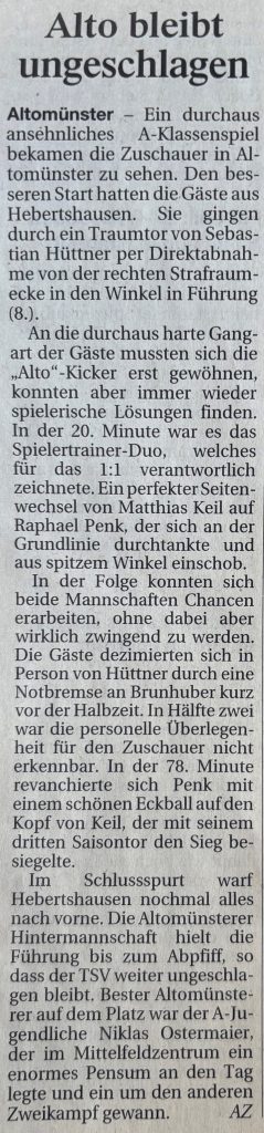 Spielbericht: TSV Altomünster – SpVgg Hebertshausen 17. September 2025 stefanadmin Schreibe einen Kommentar