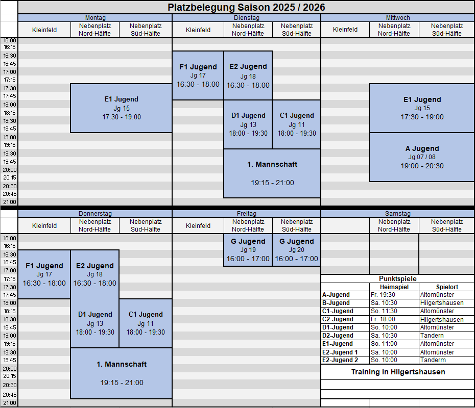 Hier finden sie die aktuellen Trainingszeiten und die Platzbelegung.